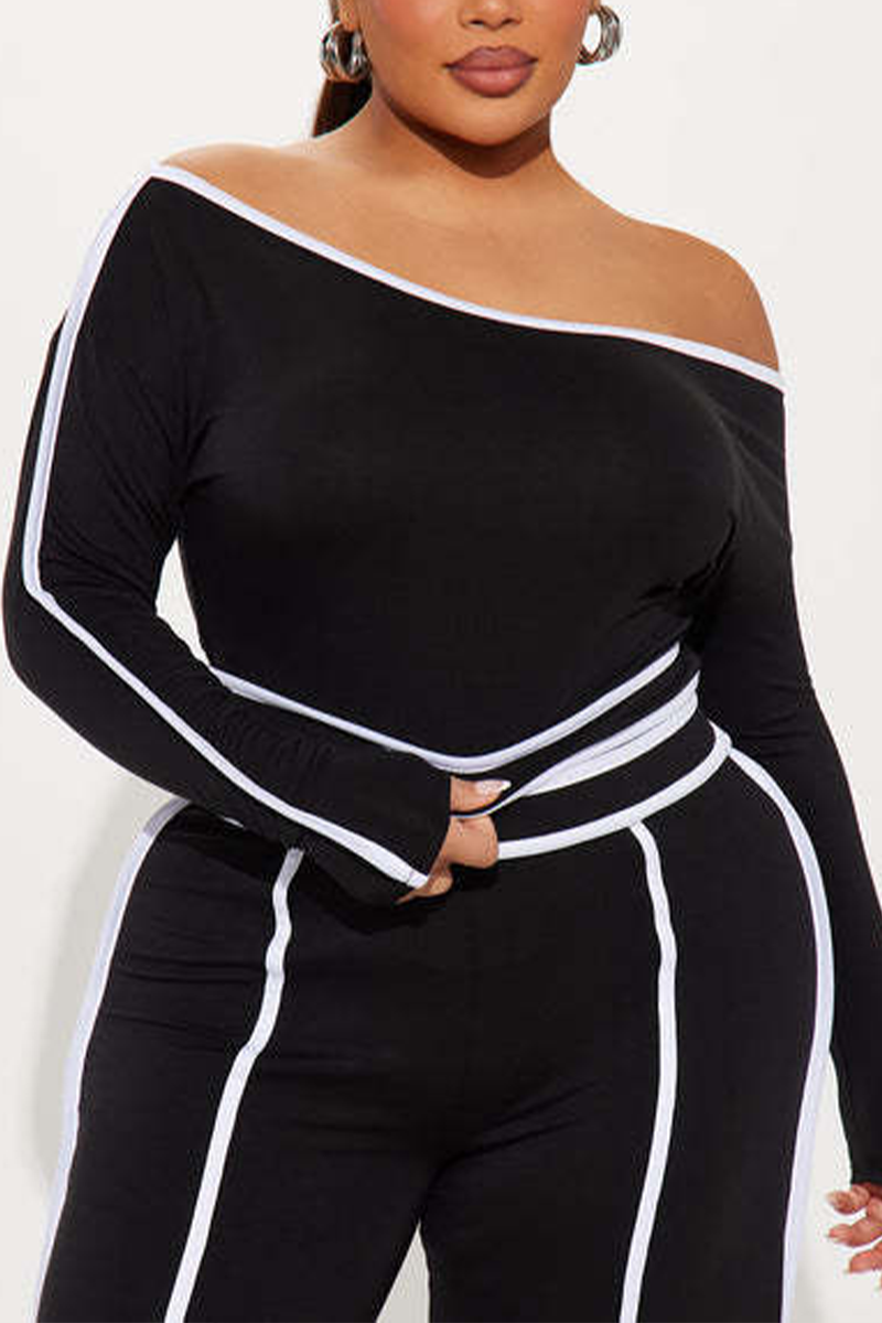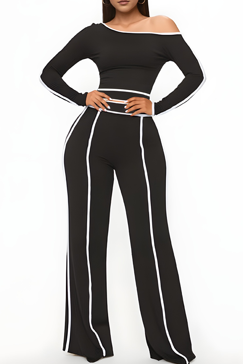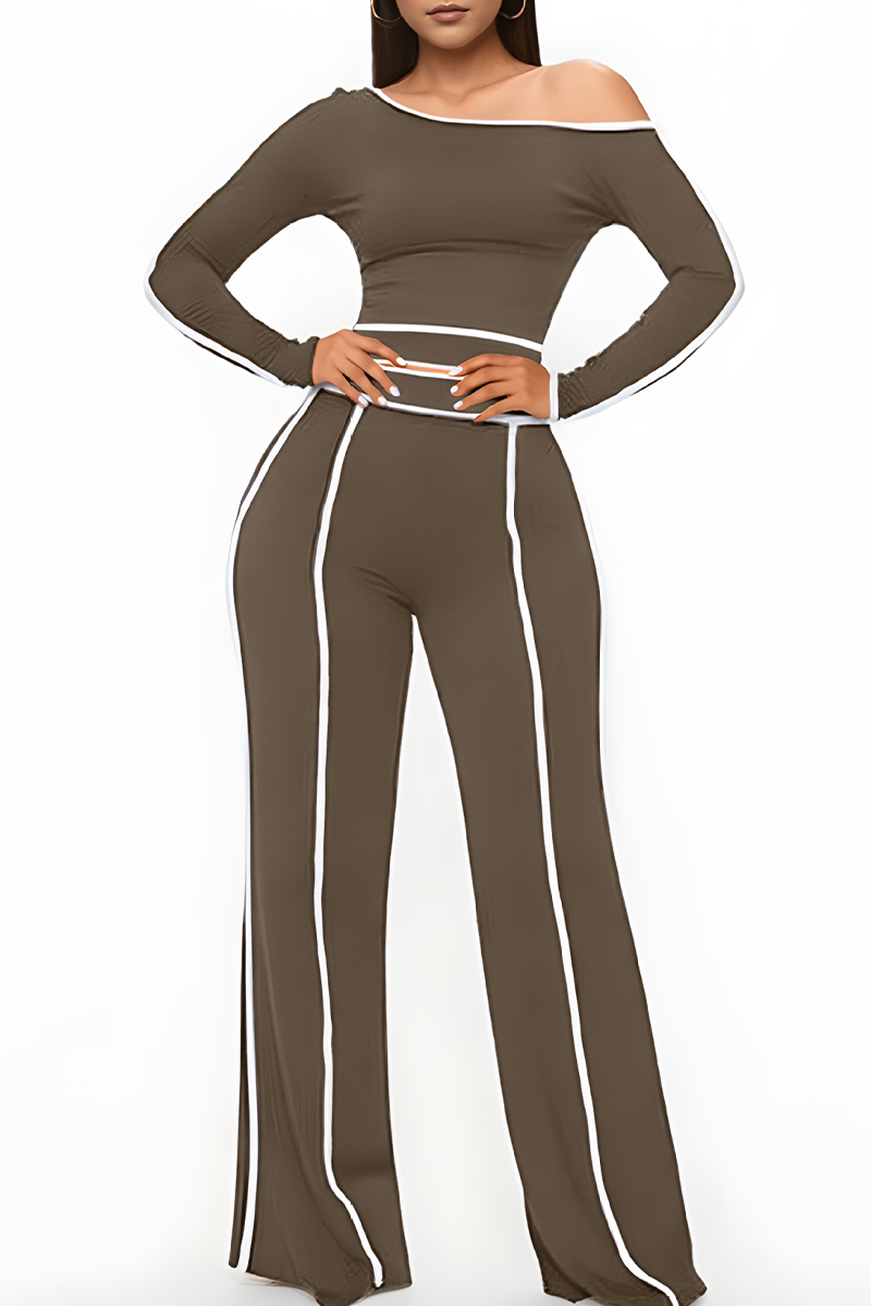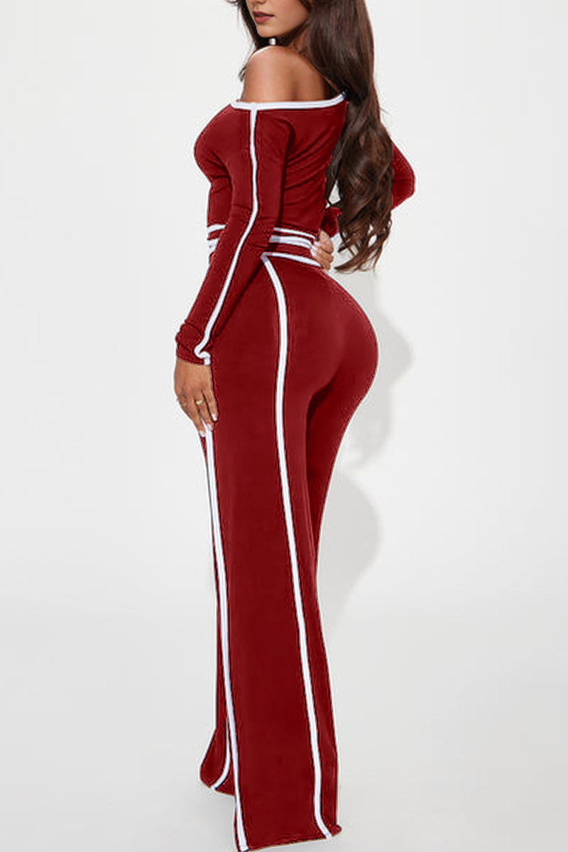 Casual Daily Solid Color Patchwork Off Shoulder Long Sleeve Two Pieces
