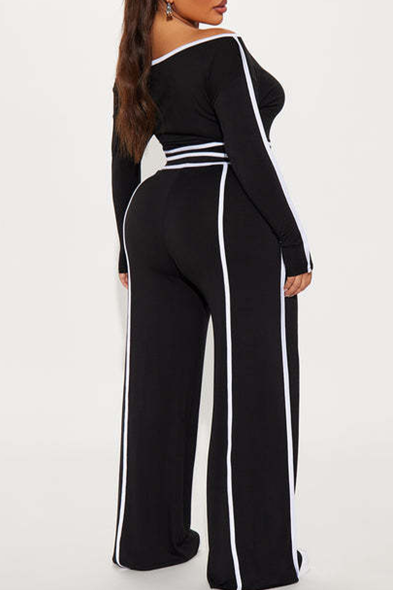 Sexy Patchwork Backless Contrast V Neck Bodycon Jumpsuits