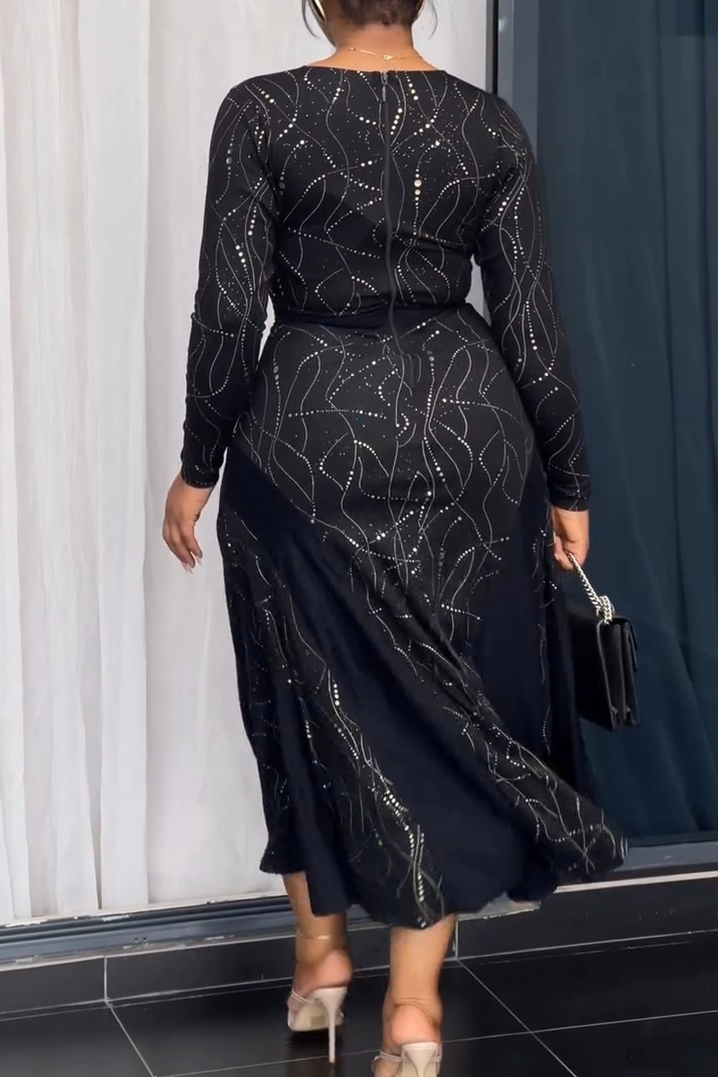 Elegant Solid Color Sequins O Neck Long Plus Size Dresses