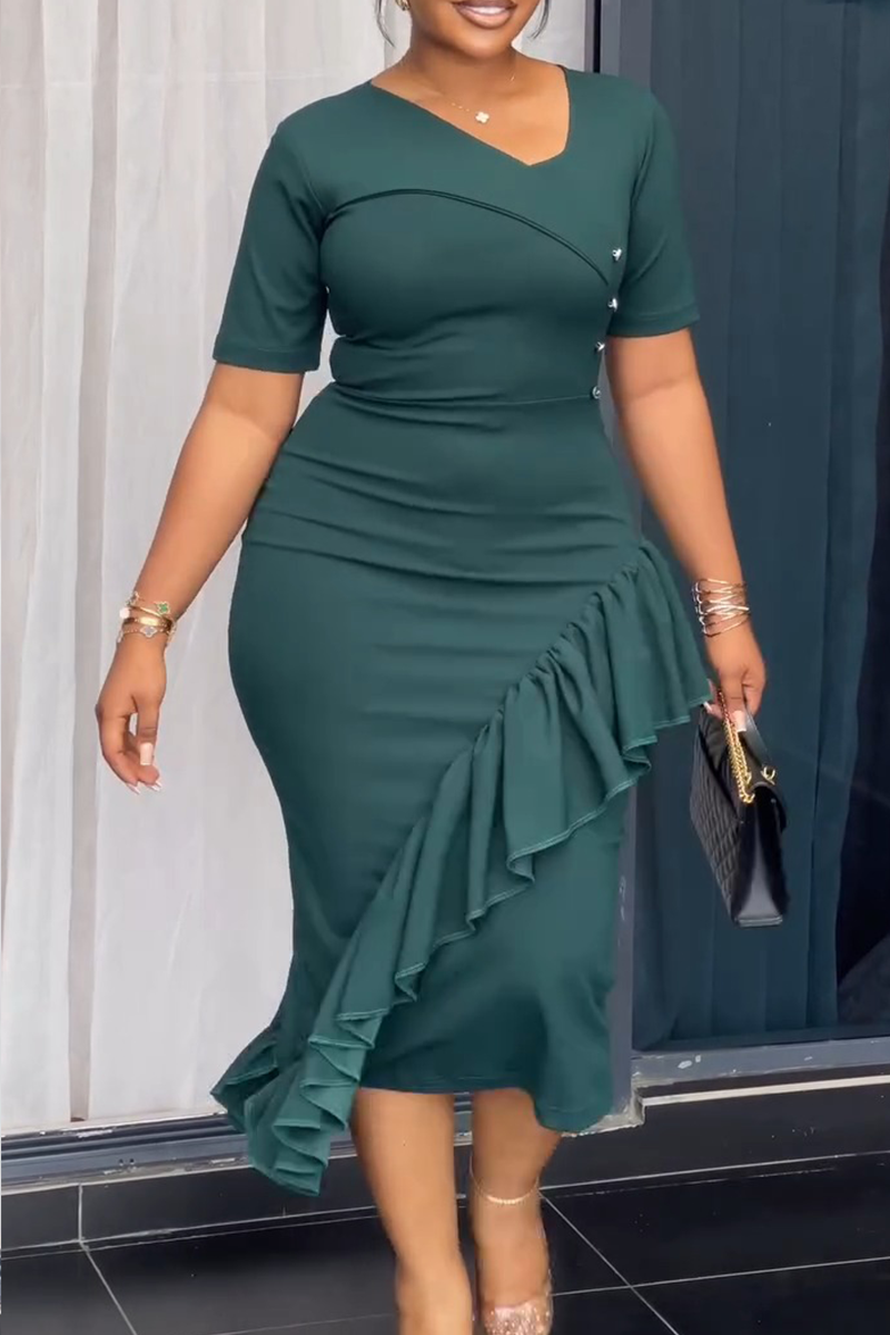 Casual Elegant Solid Color Ruffle Asymmetric Collar Long Dresses